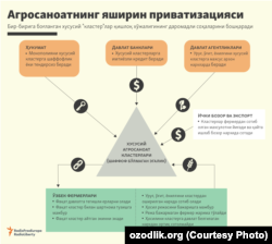 Айтишича, президент Мирзиёевнинг Ўзбекистондаги жуда қаттиқ назорат қилинадиган қишлоқ хўжалиги соҳасига оид чиқарган фармони уни янги хусусий кластер фирмасига бўйсунувчи ходим бўлишга мажбурлайди.