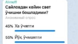 Жумладан, блогер Alimoff сайлов якунланиши билан ижтимоий тармоқда “Сайловдан кейин свет ўчишни бошладими,” деган сўров ўтказган.