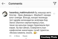 Ўз постида Эрик унга одамлар Ўзбекистонда арзирли улов тополмайсан дейишганини, лекин Отабек Муҳаммадалиевич (Умаров) бир эмас, учта машина: Maybach, Bentley ва AMG GT автомобилларини бериб турадиган бўлганини ёзди.
