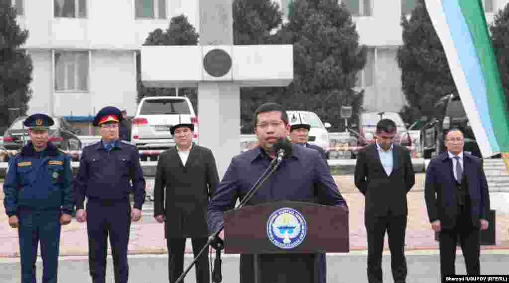 Тез ёрдам автомашиналарини Ўш шаҳри марказий майдонида Қирғизистон расмийларига Ўзбекистон номидан Андижон вилояти хокими ўринбосари Ботир Хамроев топширди.