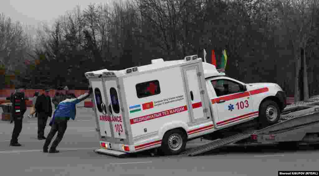 Ўзбекистон Қирғизистонга совға қилган 20 та тез ёрдам машинаси Ўш шаҳрига олиб келинди