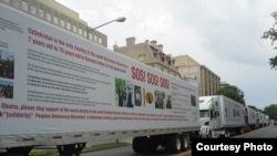 Ўзбекистонда “Президент Ислом Каримов режими жиноятлари” ҳақида сўзловчи улкан плакатлар тортилган юк машиналари жума куни Сент-Луис шаҳридан пойтахт Вашингтондаги ўзбек элчихонасигача ҳайдаб келинди.