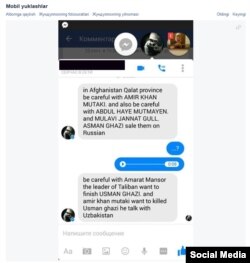"Эҳтиёт бўлинг, Толиблар етакчиси амир Ахтар Мансур Усмон Ғозийни битирмоқчи. ва амир хон муттақий Ғозийни ўлдирмоқчи, у Ўзбекистон билан гаплашган".