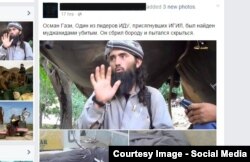 "Усмон Ғозий, ЎИҲнинг етакчиларидан бири, ИШИДга байъат берган етакчиси, мужоҳидлар томонидан ўлик ҳолда топилди. У соқолини қириб, яширинишга уринди".