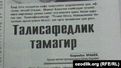 “Даракчи” нашри “Дизайн” ҳажвий гуруҳининг сўнгги концертини фельетон қилди. “Ёзувчиларимиздан бири аскияни гўнг устида очилган гулга, яна бири эркаклар ҳаммомига ўхшатган экан. “Дизайн”чиларнинг юз қизартирадиган аскияларни топишга жа усталигини тан олиш керак. Лекин бунақа қочириқларни қоидасига кўра тўрт-беш минг кишининг олдида, ким-кимлар ўтмаган табаррук саҳнада эмас, чойхонада, жа бўлмаса, ўша машҳур ёзувчимиз айтганидек ҳаммомда айтишлари керак-да”, деб ёзади муаллиф. Ёзилишича, “Дизайн”чиларнинг концерти диск ва интернетда тарқалиб улгурмасидан ҳали “она сути оғзидан кетмаган” болалар ҳам уларнинг қочиримларини ишлатиб юрибди.