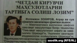 Ўзбекистонга таркибида гени ўзгартирилган организмлар мавжуд озиқ-овқат маҳсулотлари олиб кирилишини тартибга солиш лозим (“Даракчи”, 24 март). Бу ҳақда Олий Мажлис Қонунчилик палатаси Аграр ва сув хўжалиги қўмитаси аъзоси Исломжон Зокиров айтган. “Гени ўзгартирилган соя ўсимлигини еган молнинг гўштидан ҳомиладор аёл тановул қилса, туғилажак фарзанди турли нуқсон ва касалликлар билан дунёга келиши хавфи жуда юқори экани исботланган”, деб ёзади газета. Депутатга кўра, озиқ-овқат саноатида маҳсулотларга қўшилаётган биологик фаол қўшимчалар борасидаги ҳуқуқий асосларни ҳам ўз вақтида такомиллаштириш лозим.