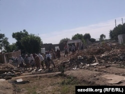 "Аввалдан аҳоли огоҳлантирилган эди, лекин тайёр уй ўрнига 4-6 сотихдан қуруқ ер беришгани одамларга ёқмади. Апрелнинг 27-чиси билан 30-инчиси орасида бульдозерлар билан келиб, уйларни бузиб ташлашди. Ҳозир 20дан ортиқ оила қариндош-уруғининг уйида яшаб юрибди", деди исмини ошкор этмаслик шарти Озодликка шикоятни етказган манба ва иккита суратни ҳам йўллади.