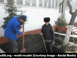 У юборган фотосуратда мактаблардан бирида лимонарий учун ер қазилаётганини кўриш мумкин.