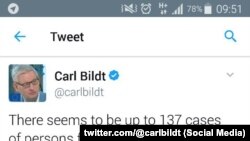 Бу ҳақда Швеция собиқ бош вазири Карл Билдт ўзининг Твиттер саҳифасида ёзди.