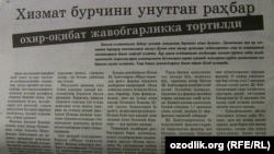Фарғонада зўравон ИИБ бошлиғи жавобгарликка тортилди