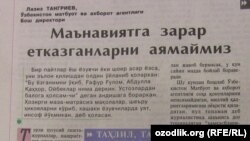 Яқинда Ўзбекистон матбуот ва ахборот агентлиги бош директори этиб тайинланган Лазиз Тангриев “Маънавиятга зарар етказганларни аямаймиз” номли мурожаат билан чиқди. Бир қатор матбуот нашрларида чоп этилган мурожаатга кўра, агентлик маънавиятга зарба бераётган, ёшлар тарбиясига салбий таъсир кўрсатаётган хусусий оммавий ахборот воситаларига қарши муросасиз уруш эълон қилган. “Энди уларни “қонунни бузманг” деган юмшоқ ва сип-силлиқ тақдимномалар юбориб, огоҳлантириш эмас, балки қилаётган номаъқулчиликларини кўрсатиб, халқимиз, жамоатчилик олдида изза қилиш фурсати етди”, деб ҳисоблайди агентлик раҳбари Л.Тангриев.