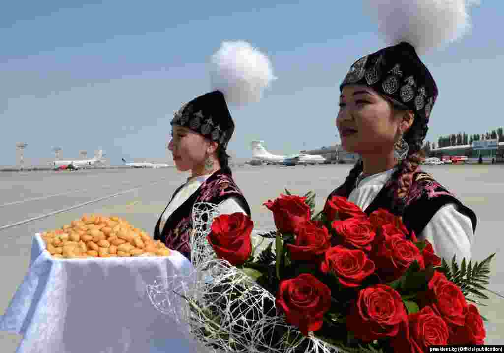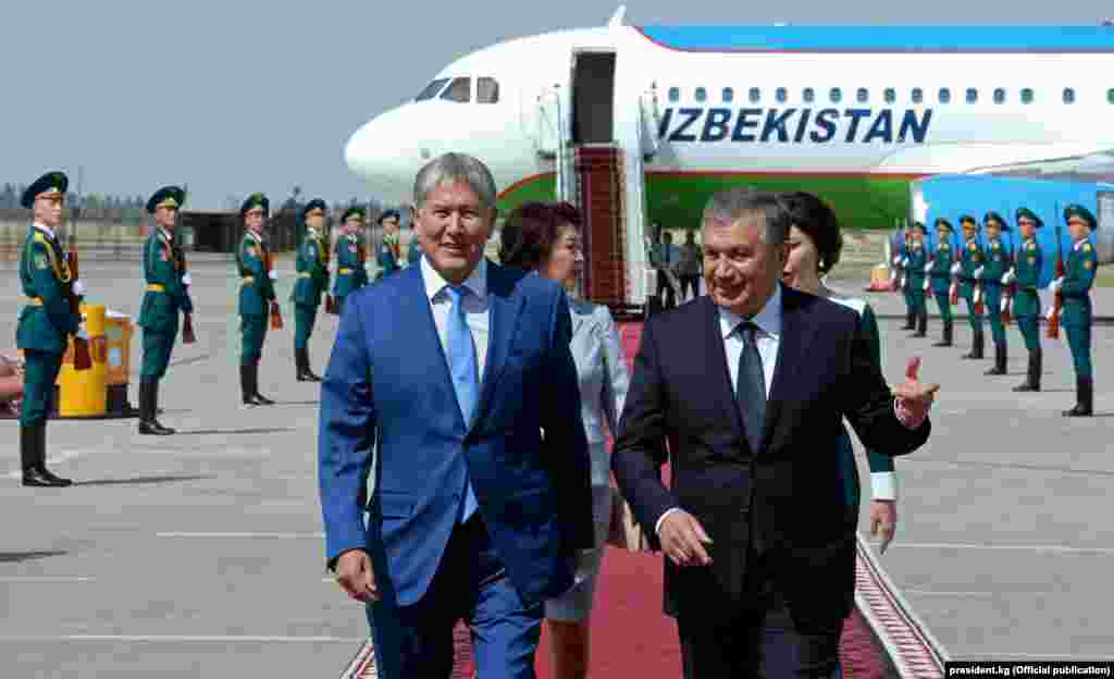 Президент Шавкат Мирзиёев 5 сентябрь куни Қирғизистон вақти билан соат 14да Бишкекка давлат ташрифини амалга ошириш учун келди. “Манас” аэропортида Миллий гвардия фахрий қоровули тизилиб, Шавкат Мирзиёев ва унинг рафиқаси Зироатхон Мирзиёевани Қирғизистон президенти Алмазбек Атамбаев рафиқаси Раиса Атамбаева билан кутиб олди.