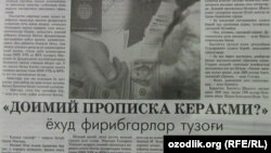 Тошкент шаҳри Яшнобод тумани ИИБ Миграция ва фуқароликни расмийлаштириш бўлими ватандошларни пул эвазига ноқонуний равишда доимий пропискага қўйиш ҳолатлари аниқланди (“Постда”, 23 сентябрь). Бўлимда ёрдамчи сифатида ишлаган аёл вилоятлардан келган ўнлаб ватандошлардан доимий прописка учун 3000 АҚШ долларигача пул олган. Сўнг паспорт бўлимининг қатъий ҳисобида турган муҳр ва штамплардан фойдаланиб, ватандошларнинг паспортига яширин равишда муҳр ва штамп босиб, доимий пропискада тургани ҳақида сохта маълумотлар киритган. Ушбу ноқонуний фаолиятга исми ошкор этилмаган бўлим ёрдамчиси раҳбарлик қилгани ва унга бошқа танишлари ёрдам бергани хабар қилинган. Жиноят аниқлангач, ушбу гуруҳ аъзолари ва уларга пул берган шахслар жиноий жавобгарликка тортилган. Хизмат вазифасига совуққонлик билан қараган Яшнобод туман паспорт бўлими ходимлари ҳам жазодан бенасиб қолмаган. Доимий пропискага оид жиноят ишидан етказилган зарар 188,8 миллион сўм деб баҳоланган.