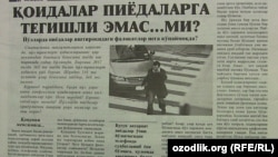 Ўзбекистонда рўй бераётган йўл-транспорт ҳодисаларининг ҳар иккитадан биттаси пиёда иштирокида рўй бермоқда. Масалан, 2017 йилда пиёда иштирокида 563 та ЙТҲ қайд этилган ва шундан 516 ҳолатда улар айбдор, деб топилган. “Оила даврасида” газетасига кўра, катта чорраҳаларда ҳамиша ҳозиру нозир йўл ҳаракати хавфсизлиги вакиллари кўп ҳолларда қоидабузарлик қилаётган пиёдаларни маъмурий жазога тортиш у ёқда турсин, ҳатто оғзаки танбеҳ бермаётир. Ҳолбуки, йўл нозирлари қоида бузган ҳайдовчиларни аяб ўтирмайди. ИИВ йўл ҳаракати хавфсизлиги бош бошқармаси матбуот хизмати бошлиғи Акмал Юнусов қоидабузар пиёдалар сони йил сайин ортиб бораётганини қайд этган. Вазирлик вакилига кўра, илгари мактабларда ўқитилган йўл ҳаракати қоидалари дарсларини ўқув дастурига қайтариш лозим.