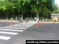 "Йўл белгилари янги бўлсин, ялтираб турсин дейишган бўлса, керак туркман президенти келадиган кун эрталаб бўяб чиқишди" дея тошкентлик қиз воқеа жойидан фотоларни Озодликка йўллади.