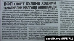 Ўзбекистон Профессионал футбол лигаси (ПФЛ) масъул ходими пора билан қўлга олинди (“Даракчи”, 24 январь). Бухоро вилояти Ғиждувон тумани Ёшлар иттифоқи ташкилотининг “Иттифоқ” жамоаси Про-лиганинг “В” лигасида иштирок этиш учун ПФЛ масъул ходими Родион Кондратьевга лицензия сўраб мурожаат қилган. Футбол расмийси эса лицензия эвазига 2500 доллар пора талаб қилган. Р. Кондратьев Тошкентда поранинг бир қисмини олаётганда ушланган. Ўзбекистон футбол ассоциацияси бу ҳолат мамлакат футболи ривожига тўсиқ бўлаётган порахўр ва тамагирларга ибрат бўлиши кераклигини таъкидлаган.