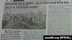 Қарши тумани Қовчин қишлоғидаги ўрта асрнинг машҳур фақиҳ алломаси Шамсиддин Ҳалвоний мангу қўним топган қадимий мажмуа хароб ва қаровсиз аҳволда (“Жамият”, 1 февраль). XI-XII асрда тикланган кулоҳи гумбазли мажмуа асл қиёфасини йўқотган. Табиат ҳодисалар ва одамларнинг эътиборсизлиги, қолаверса, термитлар ҳужуми вилоятдаги энг қадимий мажмуани ачинарли аҳволга солиб қўйган. Хусусан, 2017-2018 йилларда қабр битиклари ва сопол қопламаларга жиддий шикаст етган. Ҳолбуки, Вазирлар Маҳкамасининг 2013 йил 1 ноябридаги қарорига кўра, Шамсиддин Ҳалвоний мажмуасини таъмирлаш учун давлат бюджетидан 100 минг АҚШ доллари ажратилиши белгиланган. Қашқадарё вилоят Маданий мерос объектларини муҳофаза қилиш ва улардан фойдаланиш минтақавий давлат инспекцияси бошлиғи Жаҳонгир Халиловга кўра, маблағ нега ажратилмагани борасида Маданият вазирлиги ва бошқа мутасаддиларга қайта-қайта мурожаат қилинган, аммо бирор натижа чиқмаган.