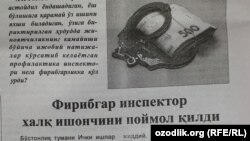 Тошкент вилояти Бўстонлиқ тумани ички ишлар бошқармаси тизимида ишлаб келган профилактика инспектори жиноий жавобгарликка тортилди (“Инсон ва қонун”, 28 май). Исми ошкор этилмаган ички ишлар ходими номусга тегиш жиноятида гумонланаётган шахсдан терговчи билан гаплашиб ишни босди-босди қилиш эвазига 3000 доллар пул талаб қилган. Бу орада гумонланувчига нисбатан очилган иш тасдиғини топмагани сабаб тугатилган. Аммо тамагир инспектор ундан пул талаб қилишда давом этган. Ички ишлар ходими ўша шахсдан 2000 доллар олаётганда ушланган. Бўстонлиқ туман жиноят ишлари бўйича суди раиси Баҳодир Қораевга кўра, инспекторга тегишли жазо тайинланган. Жиноий ишга оид бошқа тафсилотлар очиқланмаган.