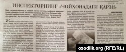 Qashqadaryo viloyati Kasbi tumani IIB profilaktika inspektori poraxo‘rlik uchun mahkamaga tortildi (“Huquq”, 10 oktabr). Ismi oshkor etilmagan inspektor janjal holati bo‘yicha voqea joyiga chaqirilgan. Mast holda bezorilik qilgan yigitga ma’muriy bayonnoma tuzishi kerak bo‘lgani holda, u haqiqiy holatni yashirgan. Huquqbuzar yigitdan ish ochmaslik evaziga 200 ming so‘m pul berish yoki choyxonadagi qarzini to‘lab kelishni talab qilgan. Qayd etilishicha, profilatika inspektori talab qilingan summani olayotgan paytda ushlangan. Sud hukmiga ko‘ra, u 3 yilga ozodlikdan mahrum etilgan.