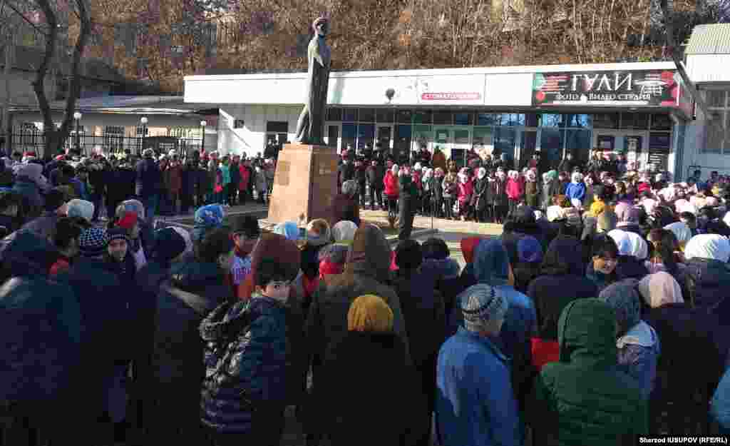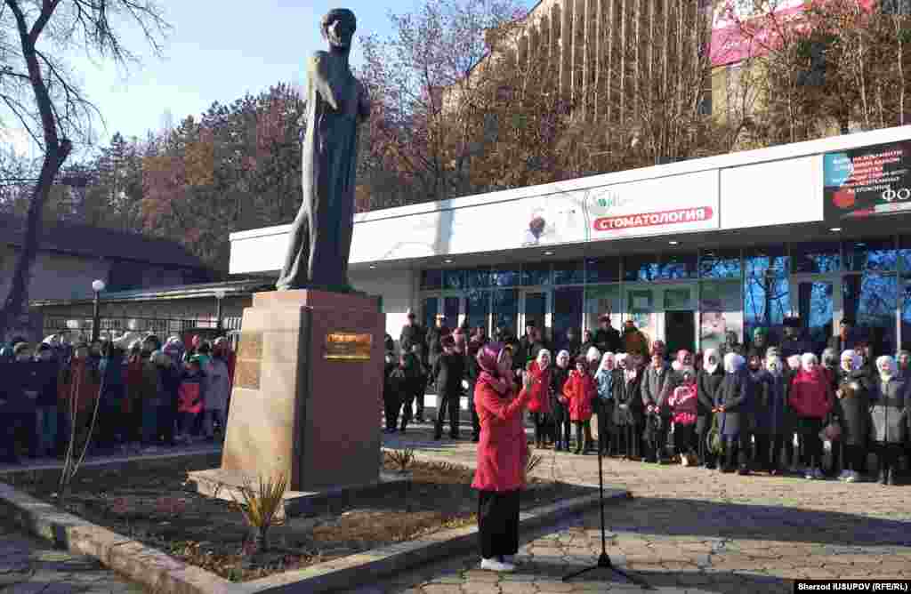 8 февраль куни Ўш шаҳри марказидаги Навоий истироҳат боғи кираверишида жойлашган Навоий ҳайкали ёнида адабиёт муҳлислари, расмийлар ҳамда мактаб ўқувчиларидан иборат юздан ортиқ одам йиғилди. Йиғилганлар ҳазрат шеъриятидан намуналар айтиб, униннг асарлари мазмуни билан ўртоқлашишди.