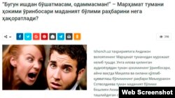 Андижон вилояти Марҳамат туман ҳокими ўринбосари – маҳалла ва оилани қўллаб-қувватлаш бўлими раҳбари Маъмурахон Сотволдиева туман маданият бўлими бошлиғи Акмал Йўлдошевни илон пўст ташлайдиган сўзлар билан ҳақорат қилди. Бу ҳақда “Ишонч” нашри хабар қилади.