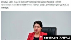 Танзила Норбоева чақалоқ савдоси билан боғлиқ жиноятларни кўпаяётганидан хавотир билдирди (www.kun.uz, 17 июнь).