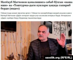 Ўзбекистонда хизмат кўрсатган артист, Киноарбоблар ижодий уюшмаси раиси Матёқуб Матчонов 2016 йилда ҳибсга олингани ва 4 ой давомида қамоқда ўтиргани тафсилотларини очиқлади (www.daryo.uz, 15 июнь).