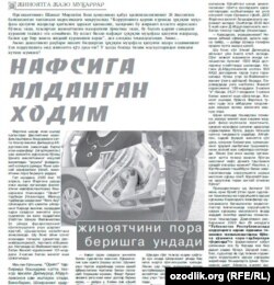 “Орият” тадбирида қатнашган катта тезкор вакил қўшмачиликда айбланаётган аёлдан терговда қамамаслик эвазига 2000 доллар пул талаб қилади. Бундан ташқари, ИИБ ходими аёлнинг уйида у билан бир неча марта жинсий яқинлик қилади. Пулни талаб қилавергач, аёл ИИБ ходими устидан ДХХ Фарғона вилоят бошқармасига мурожаат қилади. Тезкор вакил қўшмачиликдан айбланган аёлдан 1500 АҚШ долларини олаётганда ушланади. Қайд этилишича, исми ошкор этилмаган ИИБ ходимига озодликдан маҳрум этиш жазоси тайинланган. Жиноят ишига оид бошқа тафсилотлар очиқланмаган.