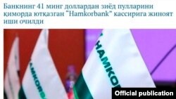 “Hamkorbank” акциядорлик тижорат банки Тўрткўл минибанки кассири Бегижон Рузумовга нисбатан Жиноят кодексининг 167-моддаси билан жиноят иши қўзғатилди (www.human.uz, 3 август).
