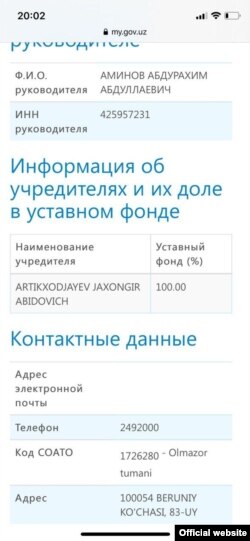 Бу МЧЖнинг қоғоздаги эгаси¸Озодликдаги ҳужжатларга кўра¸ Тошкент шаҳар ҳокимлиги.