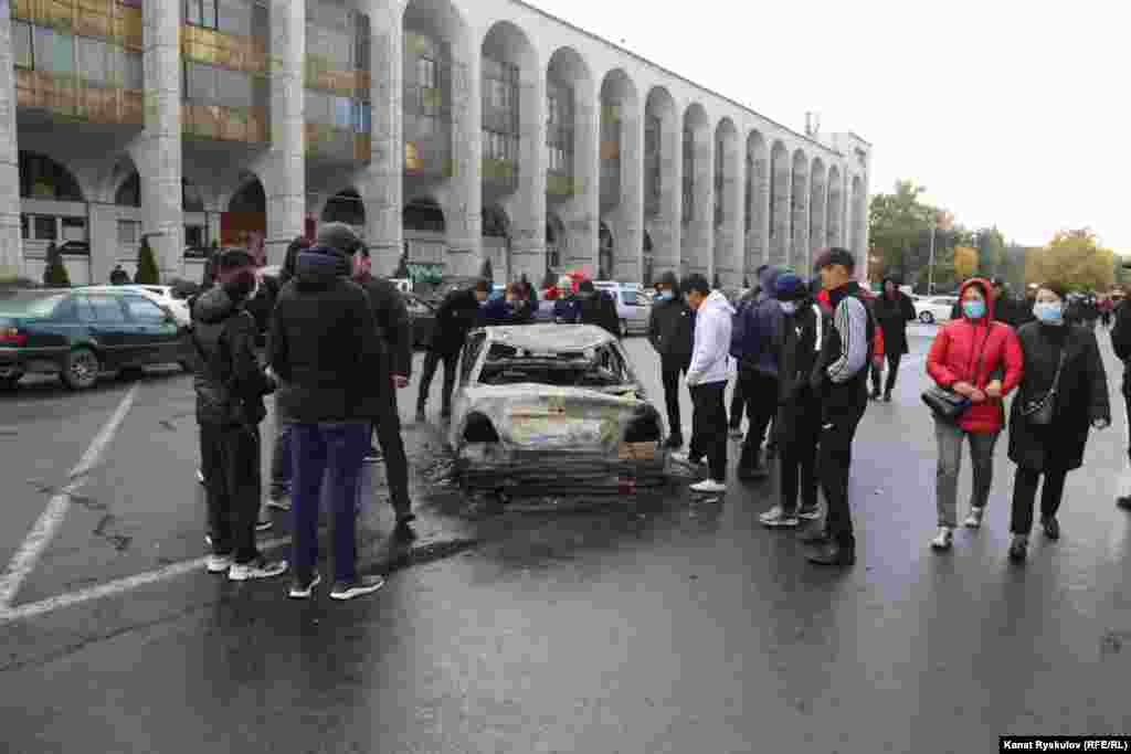 Ала-Тоо майдонида ёқиб юборилган машина.