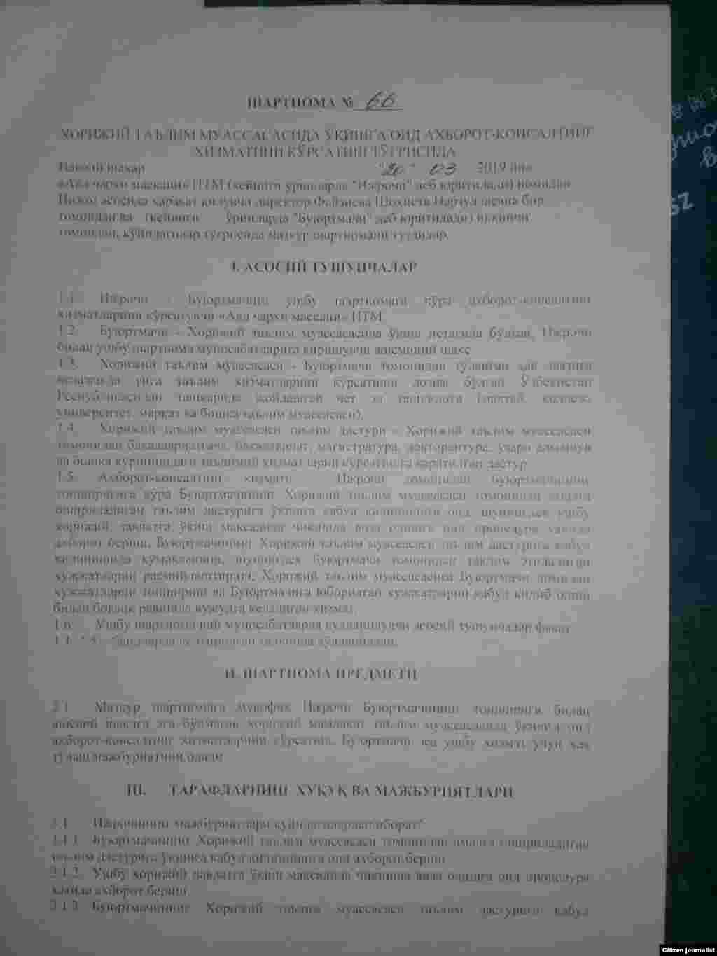 "Ақл чархи маскани" билан талабалар ўртасида тузилган шартнома
