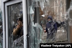 Озодлик қозоқ хизматининг шаҳар ҳокимияти атрофидаги вазиятни кузатаётган мухбирлари номаълум шахслар ҳарбийлар ташлаб қочган ўқотар қуролларни қўлга киритганини ва отишма бўлаётганини хабар қилди.