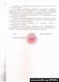 Суд қарорига мувофиқ¸ Абдуллаев МХХ тергов изоляторида сақланади ва 10 кун ичида унга қарши айбланувчи сифатида жиноий иш очилади¸ акс ҳолда¸ у ҳибсдан озод этилади.