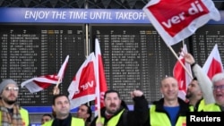 Германиядаги 13 та энг йирик аэропорт 10 март куни ўз ишини бир суткага тўхтатиб қўйди. Хизмат кўрсатиш соҳаси ходимларининг Ver.di бирлашган касаба уюшмаси қайдича, иш ташлаш шартлари шундай бўлган. Душанба куни аэропортларга ерда хизмат кўрсатувчи ходимлар ишга чиқишмаган − уларнинг меҳнатига давлат сектори тарифларига кўра ҳақ тўланади.