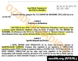 Озодлик Ўзбекистон томонидан оғир жиноятларда айбланиб¸ озодликдан чеклаш жазосига ҳукм этилган¸ АҚШ ва Европада йирик миқдорда пора олганликда айбланаëтган Гулнора Каримованинг бу васиятномаси ҳозирги шароитда қанчалик қонуний кучга эга эканини ўрганишга ҳаракат қилади.