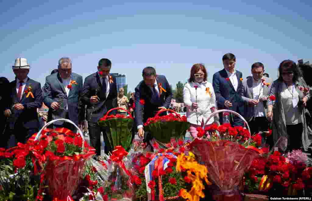 7 километр масофа босиб ўтилган “Ўлмас полк” юришида амалдаги президент Сўўрўнбай Жээнбеков, собиқ президентлар Роза Ўтунбаева ва Алмазбек Атамбаев, бош вазир Муҳаммедқалий Абилгазиев иштирок этди. Улар иккинчи жаҳон урушида иштирок этган оталари ва боболари портретларини кўтариб ўтишди.