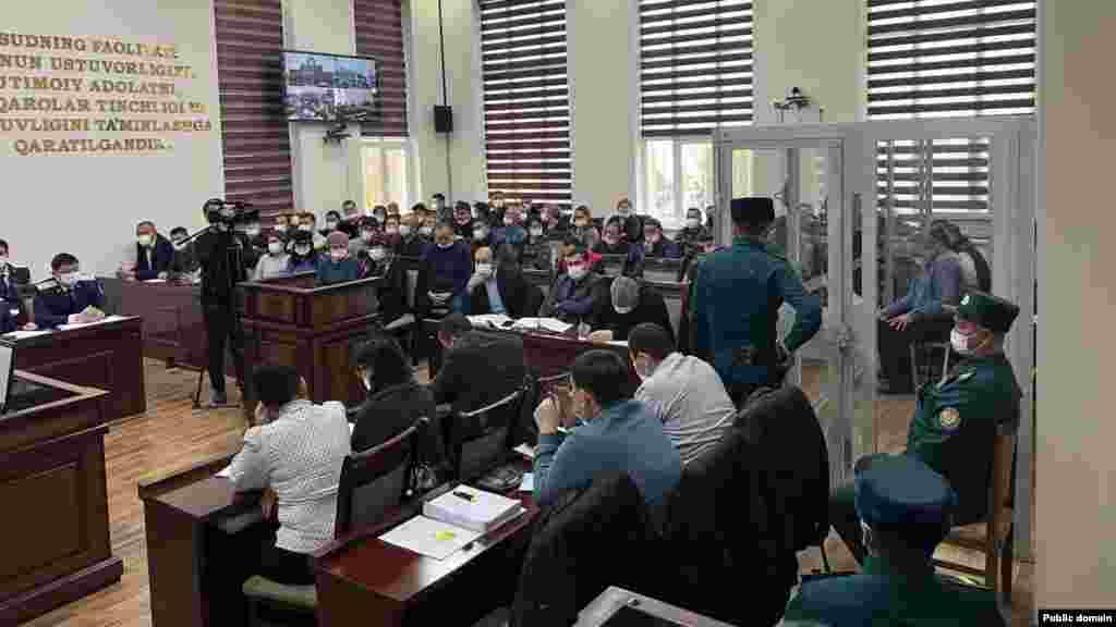 Бухоро вилоят судида 2022 йил 1-2 июль кунлари Нукус шаҳрида содир этилган оммавий тартибсизликлар бўйича 22 нафар судланувчига оид жиноят ишини кўриб чиқиш бўйича очиқ суд жараёнидан фотосуратлар.