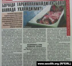 Андижон вилояти Қўрғонтепа туманидаги 9-сонли мактабгача таълим муассасаси фаолият ўрганилганда, боғча ичидаги ванна ичида мурғак бола ухлаб ётгани аниқланган (“Даракчи”, 15 ноябрь). Текширув вақтида ванна ичида ухлаётган бола боғча тарбияланувчиси эмаслиги, у боғча ошпазининг набираси экани маълум бўлган. Қайд этилишича, ошпаз аёлнинг қизи шошилинч равишда шифохонага кетган ва у ошпаз набирасини ишхонасига олиб келган. Набирасининг уйқуси келгач эса, буви ванна ичига тўшак солиб ўша ерда ухлатган. Ҳисобда кўрсатилмаган тарбияланувчилар юзасидан изоҳ берган Мактабгача таълим вазирлиги мазкур боғчадаги вазият тўлиқ ўрганилмагунга қадар хулоса қилишга эрта эканини айтган.