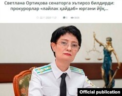Бош прокурор ўринбосари Светлана Ортиқова сенатор Абдураҳим Эркаевнинг мулоҳазаларига эътироз билдирди (www.xabar.uz, 22 ноябрь).