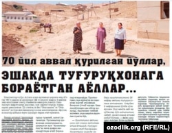 “Қишлоғимиз аёлини икки қоп сомон ортилган отга ётқизиб, туғруқхонага олиб борганман. Касалларни эшакда касалхонага олиб борамиз. Бизнинг қишлоққа умуман тез тиббий ёрдам машинаси келмайди. Мен ўз машинамда бир неча йилдан бери қишлоғимизнинг 38 нафар аёлини туғруқхонага элтганман. Улардан 8 нафари йўлда кўзи ёриган. Бир нечта аёл ва гўдаклар йўл қийинчилиги сабаб касалхонага етмай нобуд бўлган”, дейди шу ерлик Нормамат Раҳимов.