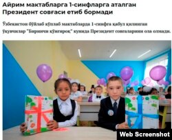 Ўзбекистон бўйлаб кўплаб мактабларда 1-синфга қабул қилинган ўқувчилар “Биринчи қўнғироқ” кунида президент совғаларини ололмади (www.kun.uz, 8 cентябрь).