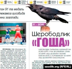 Сурхондарё вилояти Шеробод тумани Катта ҳаёт маҳалласида “Гоша” лақабли гапирадиган қарға бор (“Ўзбекистон овози” газетаси, 15 сентябрь). Хонадон бошлиғи Бўри Раҳимов қарға боласини бир неча йиллар олдин ўғли Шодибекка олиб келиб берган. Тез орада қарғанинг гапириш иқтидори юзага чиққан. Унинг дастлабки сўзи “Шодибек” бўлган. Икки-уч йилда 30 дан зиёд сўзни бемалол айта бошлаган. Жумладан, “Яхши ўқи”, “Отахон, яхши боринг”, “Онахон, яхши боринг” дейдиган бўлган.