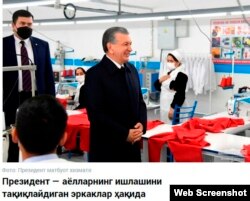 Президент Шавкат Мирзиёев Наманган вилоятига ташрифи давомида 120 нафар аёл ва эркак ишлайдиган “Dream linet tesktil” компанияси раҳбари билан суҳбат қилиб, аёлларнинг ишлашини тақиқлайдиган эркаклар ҳақида фикр билдирди (www.gazeta.uz, 22 февраль).