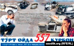 Жорий йилнинг 4 ойида Ўзбекистонда рўй берган йўл-транспорт ҳодисаларида 557 киши қурбон бўлган, 1684 киши жароҳатланган. Ушбу аварияларда 32 ёшгача бўлган ҳайдовчиларнинг улуши катта (“Оила даврасида”, 27 май).