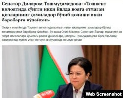 Сенатор Тошмуҳамедова: “Тошкент вилоятида вояга етмаган қизларнинг ҳомиладор бўлиб қолиши икки баробарга ортди”