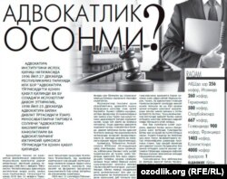 Адвокатлик институтини янада мустаҳкамлаш зарур, чунки айрим ҳуқуқни муҳофаза қилиш идоралари ходимларининг ноқонуний хатти-ҳаракатларидан тинкаси қуриган фуқарога фақатгина адвокат малакали ёрдам бера олади, деган профессор Баҳром Аҳроров (“Ўзбекистон овози” газетаси, 27 октябрь).