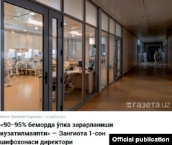 Бугунги кунда Тошкент вилояти Зангиота туманидаги махсус шифохоналарга мурожаат қилаётганларнинг аксари енгил даражадаги беморлардир. Бу ҳақда Зангиота 1-сон юқумли касалликлар шифохонаси директори Анвар Ҳусанов маълум қилди (www.gazeta.uz, 19 январь).