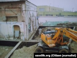 Ачинарлиси шундаки, тамал тоши дастлаб ўн бешинчи асрда қўйилган, сўнгра йигирманчи асрнинг бошида қайта тикланган бир қаватли мадрасанинг тарихий деразалари ва эшикларини тўсган ҳолатда, энг хайратланарлиси эса, оралиқ муҳофаза худудини бир метр ҳам қолдирмасдан икки қаватли Халқ банкининг биноси қурилмоқда.