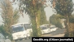"Асака туманидан ёзмоқдаман. Асака туманида жойлашган ташкилотлар, ҳокимият идораси ва ЎзДЭУ ходимлари биргаликда пахта теримига олиб кетилмоқда. Ичида банк ходимлари ҳам бор. Суратларда кўришинг, автобуслар колонаси уларни далаларга олиб кетмоқда".